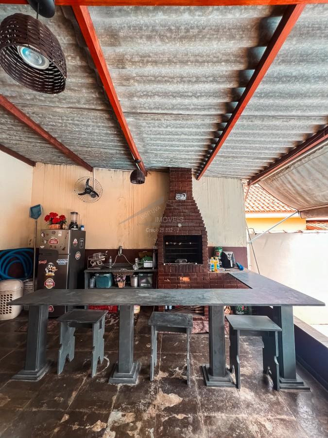 Casa principal com 2 Dormitórios, Sala de TV/Estar, Cozinha, 1 Banheiro Social, Varanda, Lavanderia Ampla, Garagem Coberta com 4 Vagas, Piscina, Área Gourmet com Churrasqueira, Quintal Amplo com Árvores Frutíferas (amora, limão taiti, mexerica, goiaba, jabuticaba), Portão Eletrônico e Sistema de Monitoramento Externo. Aos fundos uma Edícula com 1 Dormitório e 1 Banheiro. O imóvel apresenta ao todo 191m² de Área Construída em 2 lotes totalizando 600m² de terreno em bairro próximo ao centro. No entorno encontram-se pontos comerciais como farmácia, padariaa, mercado, escola, bares e restaurantes.