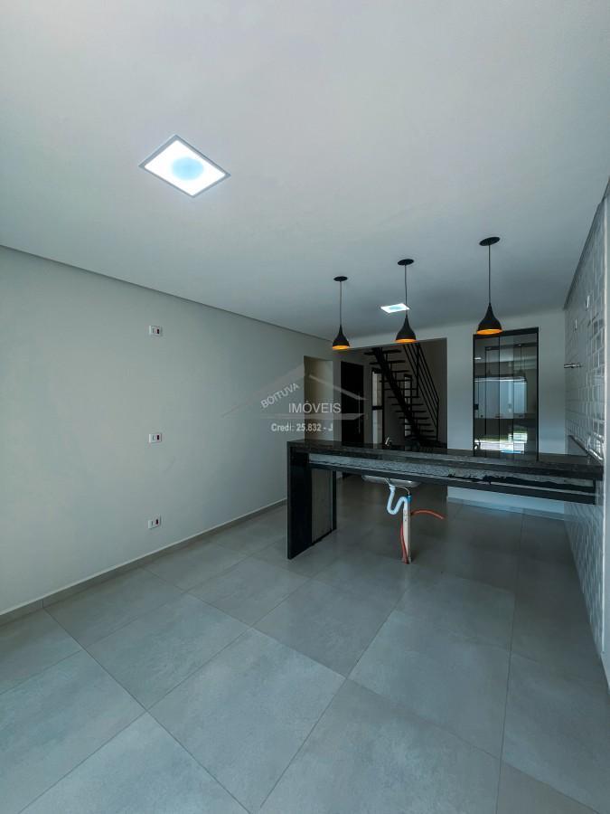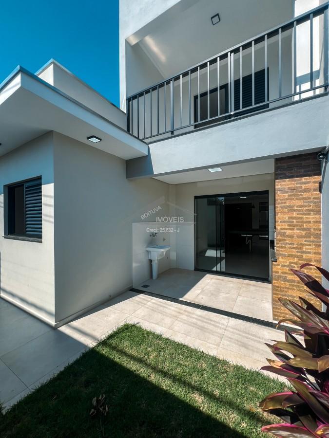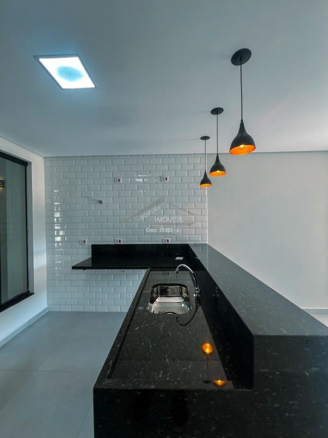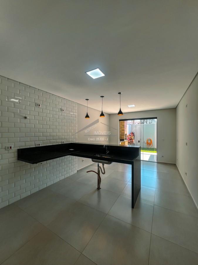 São 140m² de Área construída em um Terreno de 152,60m² com 3 Dormitórios sendo 1 Suíte no Pavimento Térreo e 1 Suíte com Varanda no Piso Superior, Sala de Estar, Área de Luz, Escada em Estrutura Metálica com Pisadas em Madeira Maciça Angelim, Cozinha Americana já com Cuba instalada em Mármore projetado para receber móvel planejado, Sala de Jantar, Área Gourmet, Espaço para Lavanderia, 1 Banheiro Social, Espaço de Quintal com Gramado, Garagem Coberta para 2 Carros, Portão Eletrônico e Cerca Elétrica, Infraestrutura preparada para Ar Condicionado com 1 Ponto em Todos os Cômodos.