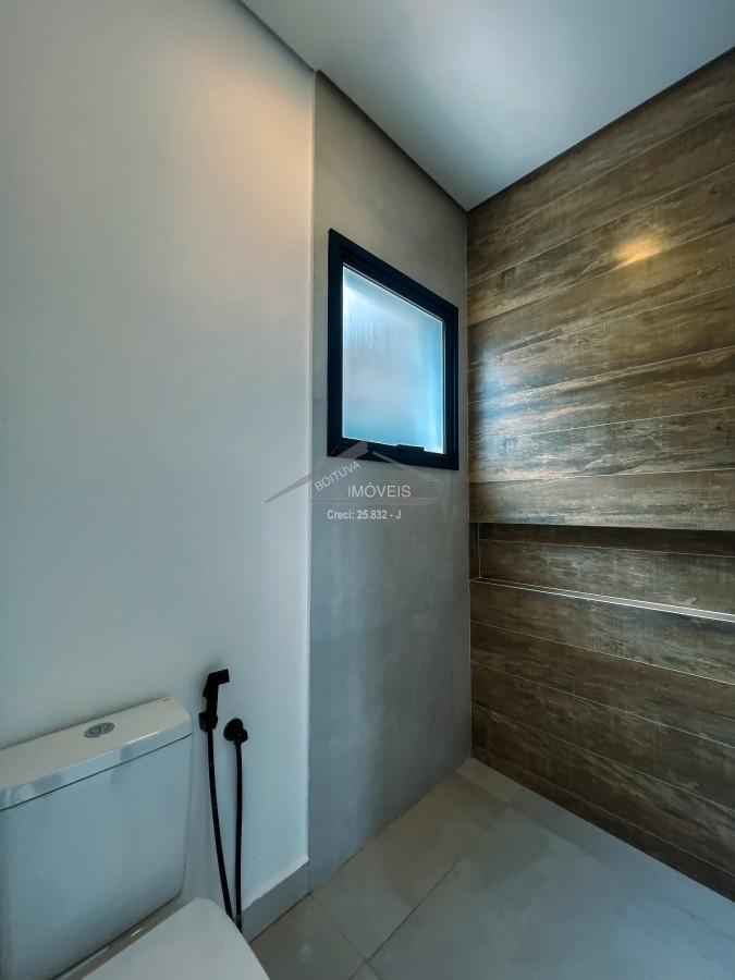 A garagem comporta 6 veículos, sendo 2 vagas cobertas e 4 descobertas. Nos acabamentos, destaque para o porcelanato na parte térrea e piso laminado no pavimento superior, reforçando o padrão construtivo diferenciado.