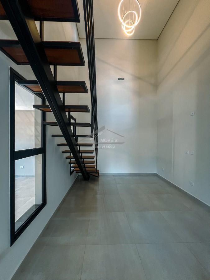 São 140m² de Área construída em um Terreno de 152,60m² com 3 Dormitórios sendo 1 Suíte no Pavimento Térreo e 1 Suíte com Varanda no Piso Superior, Sala de Estar, Área de Luz, Escada em Estrutura Metálica com Pisadas em Madeira Maciça Angelim, Cozinha Americana já com Cuba instalada em Mármore projetado para receber móvel planejado, Sala de Jantar, Área Gourmet, Espaço para Lavanderia, 1 Banheiro Social, Espaço de Quintal com Gramado, Garagem Coberta para 2 Carros, Portão Eletrônico e Cerca Elétrica, Infraestrutura preparada para Ar Condicionado com 1 Ponto em Todos os Cômodos.