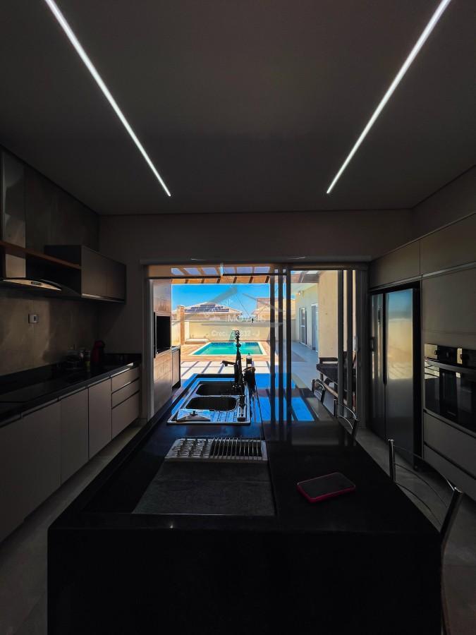 Com 178m² de área construída em um amplo terreno de 420m², este imóvel foi projetado para oferecer funcionalidade e elegância em cada detalhe. São 3 suítes espaçosas, com possibilidade de reversão para a 4ª suíte, atendendo perfeitamente famílias que valorizam conforto e versatilidade. A área social impressiona pelo pé direito estendido, proporcionando amplitude e luminosidade natural à sala de estar e jantar integradas. A excelente integração entre os ambientes conecta harmoniosamente o interior à área externa, criando um fluxo ideal para receber amigos e familiares. O imóvel conta ainda com lavabo, escritório home office — ideal para quem busca produtividade e privacidade — e acabamentos que valorizam cada espaço.