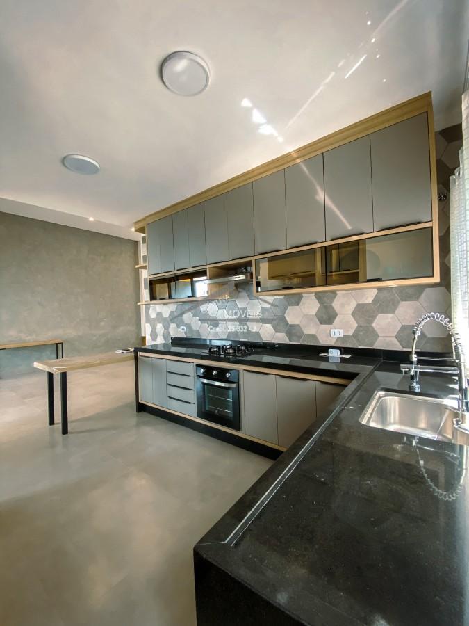 Logo na entrada, a sala de estar e jantar com pé-direito alto impressiona pela luminosidade natural e sensação de espaço, criando um ambiente elegante e acolhedor para receber amigos e familiares. A cozinha conta com móveis planejados, garantindo organização, praticidade e um acabamento moderno.